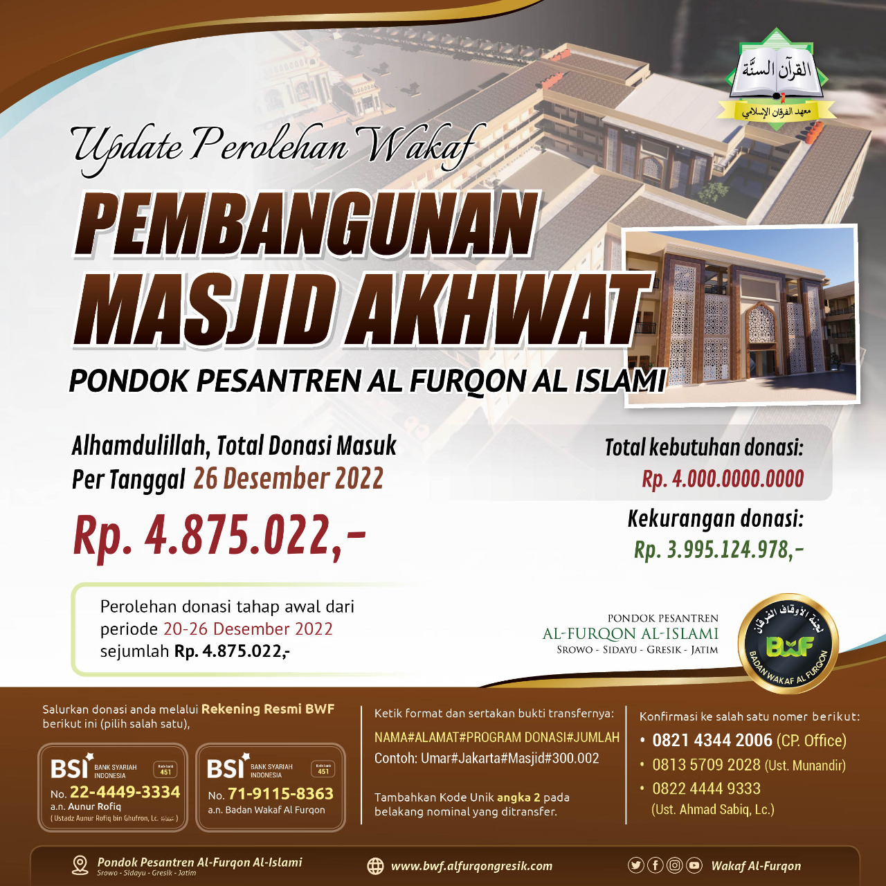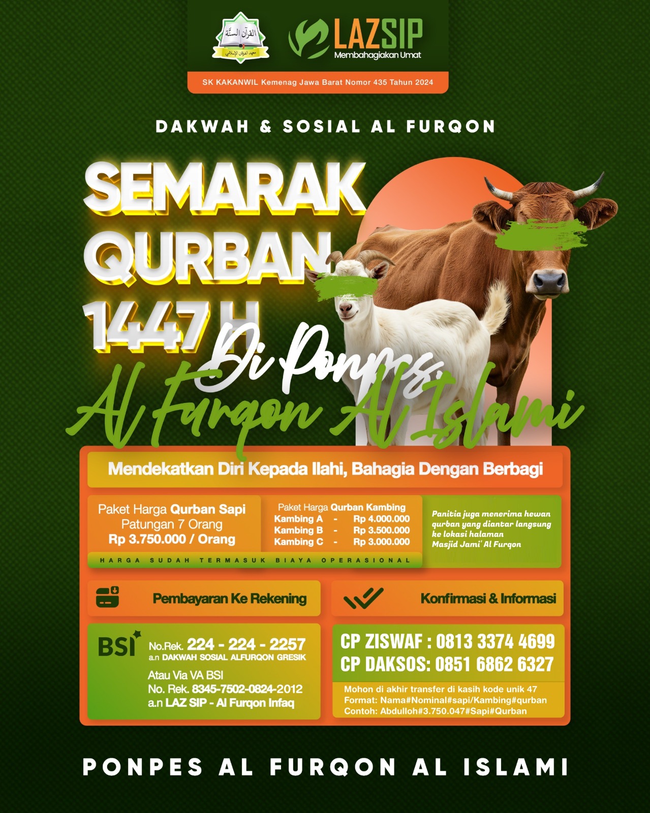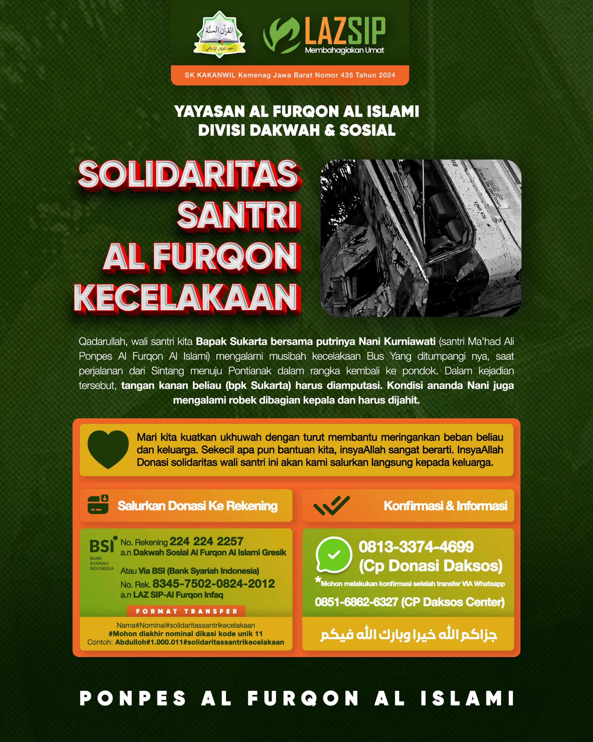 ZISWAF Al-FURQON adalah gabungan dari dua bidang yang berbeda yaitu BWF - Badan Wakaf Al-Furqon dan DAKSOS - Bidang Dakwah & Sosial Al-Furqon yang selanjutnya digabung menjadi satu bidang.
